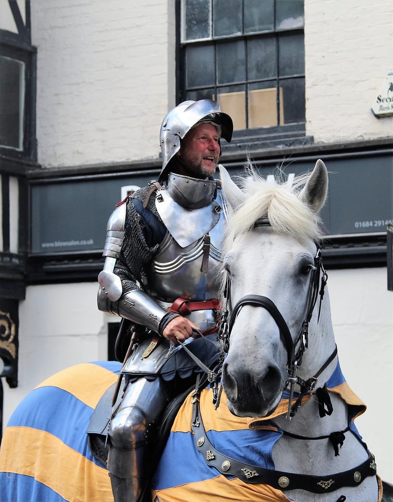 Step back in time to the Middle Ages with a velvet tunic, breeches, and a cloak. Complete the look with leather boots, a belt, and a feathered hat for a classic medieval ensemble.